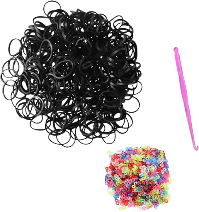 Tuilful 600+ Black Loom Bands Refill Pack with Hook Tool and Colorful S Clips Art Craft Refills for DIY Bracelet Making Refill Kit (600+)