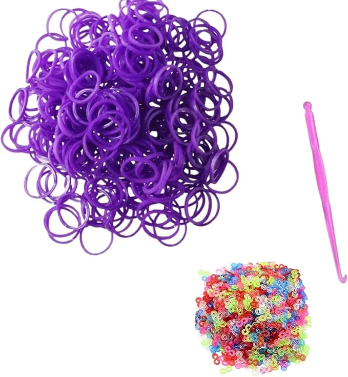 Tuilful 600+ Purple Loom Bands Refill Pack with Hook Tool and Colorful S Clips Art Craft Refills for DIY Bracelet Making Refill Kit (600+)