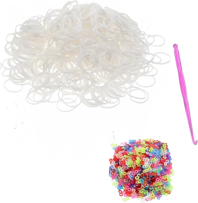Tuilful 600+ White Loom Bands Refill Pack with Hook Tool and Colorful S Clips Art Craft Refills for DIY Bracelet Making Refill Kit (600+)