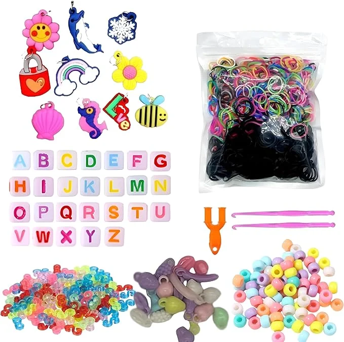 Tuilful 1000+ Loom Bands Kit Refill Friendship Bracelet Kit for Boys and Girls Includes Loom Bands Alphabet Beads S Hooks Rubber Charms with Storage Bag DIY Craft Gift (1000)