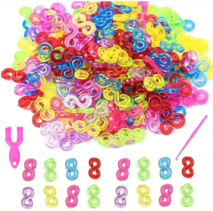 Tuilful 600 Colorful S Clips, Y Loom & 1 Crochet Hook – Rubber Band Connectors for DIY Bracelet Crafting, S Clips Refills Kit, and Jewelry Making Accessories